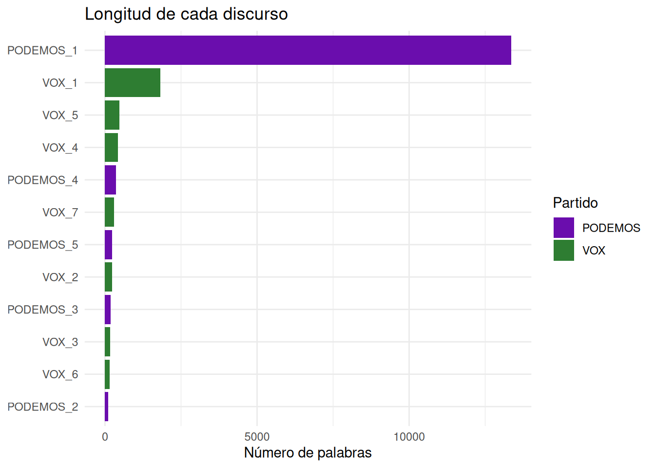 Gráfico de barras: longitud por discurso