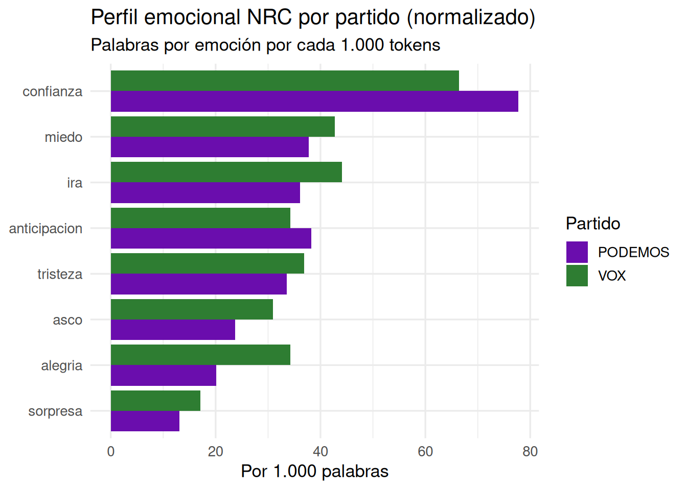 - Reto: Crea una DFM solo con los discursos de VOX. ¿Coincide con el TF-IDF?